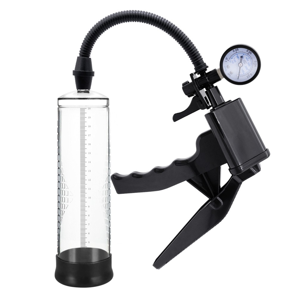 Turn your cock into a massive pleasure rod with this Lust Pumper penis Pump With Trigger. Do it yourself or with a partner and really feel big! It s all you need to feel the sensation of having a really large penis and exercise your penis muscle at the same time. The chamber is 8.5″ (23cm) long to accomodate any sized penis and it features a pressure gauge to monitor your pumping. It provides strong suction and pressure that can be easily released with the pressure release valve. For short term results or long term gains, you re sure to notice an improvement in your penis length and girth when using this wonderful penis pump.