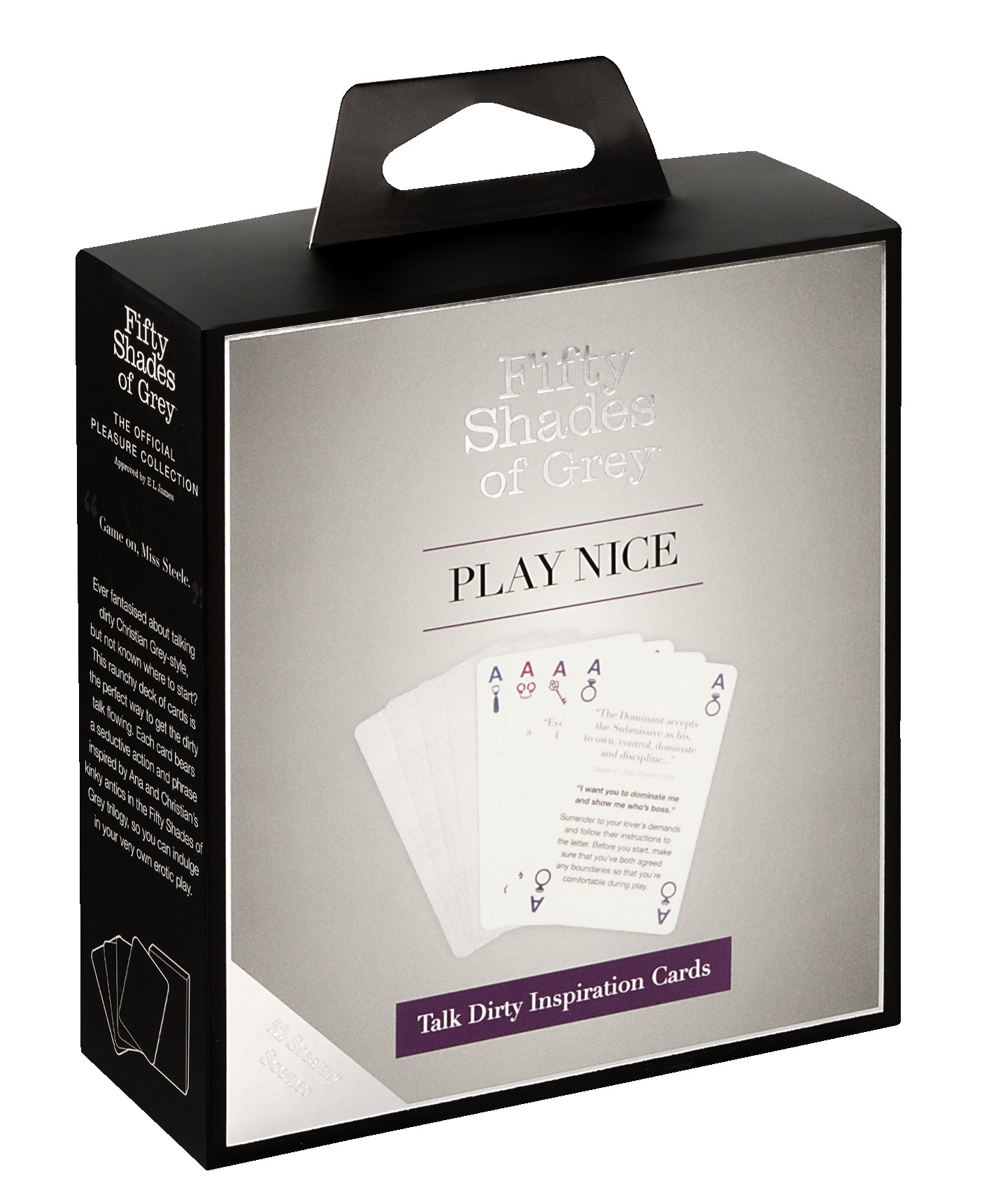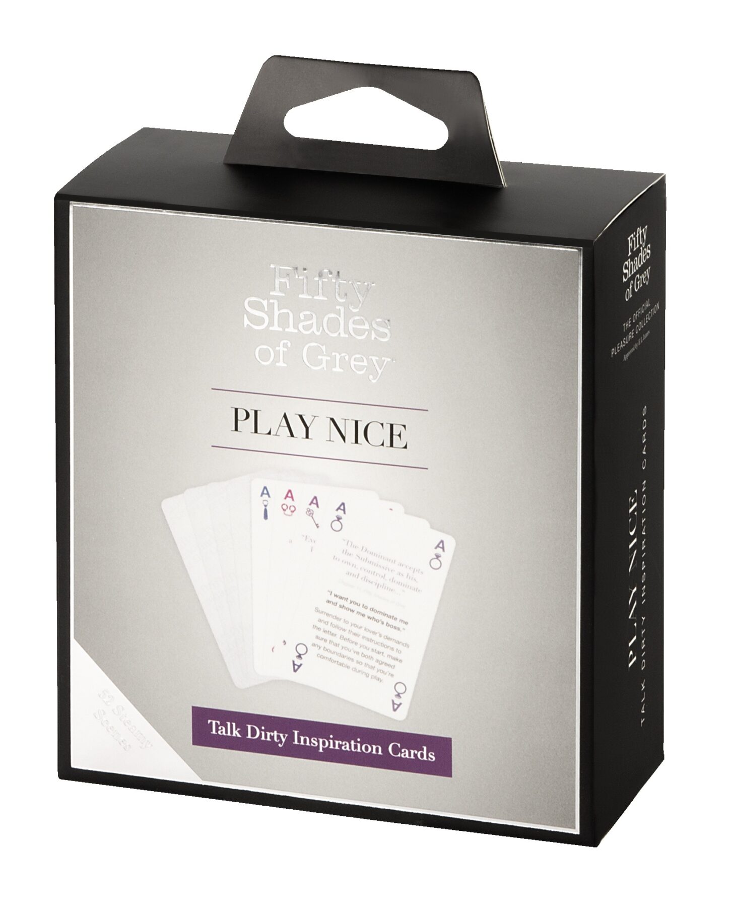 The Play Nice Talk Dirty Inspiration Cards card game from Fifty Shades of Grey is in a beautiful design and it is the perfect inspiration for dirty talk, roleplay and exciting actions! Each of the 52 cards has a quote from the Fifty Shades of Grey trilogy, a seductive sentence and a matching action that should be done. The cards are split into 4 colours – from beginner-friendly to hot quotes and actions. A joker can be used for a very special action – the players can try out their own ideas.