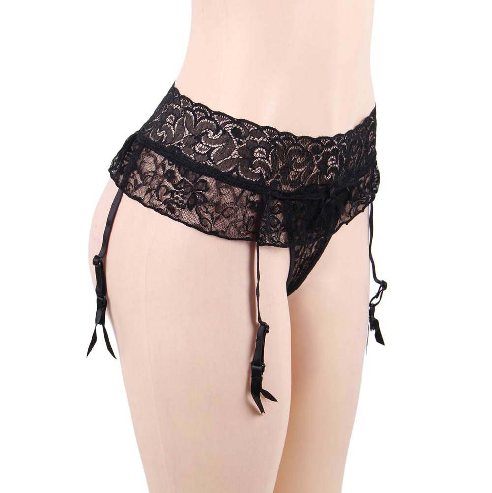 Sexy floral lace garter belt with attached crotchless string