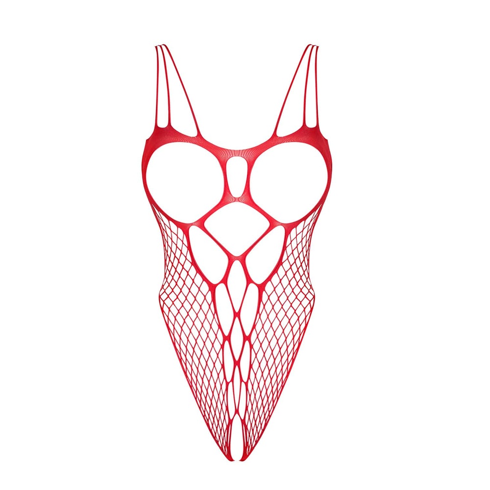 Wild, sexy and fearless! Isn’t that how you would like to feel tonight? This fiery red teddy accentuates your curves through its pattern with holes all while giving your breasts and down area a show of their own!