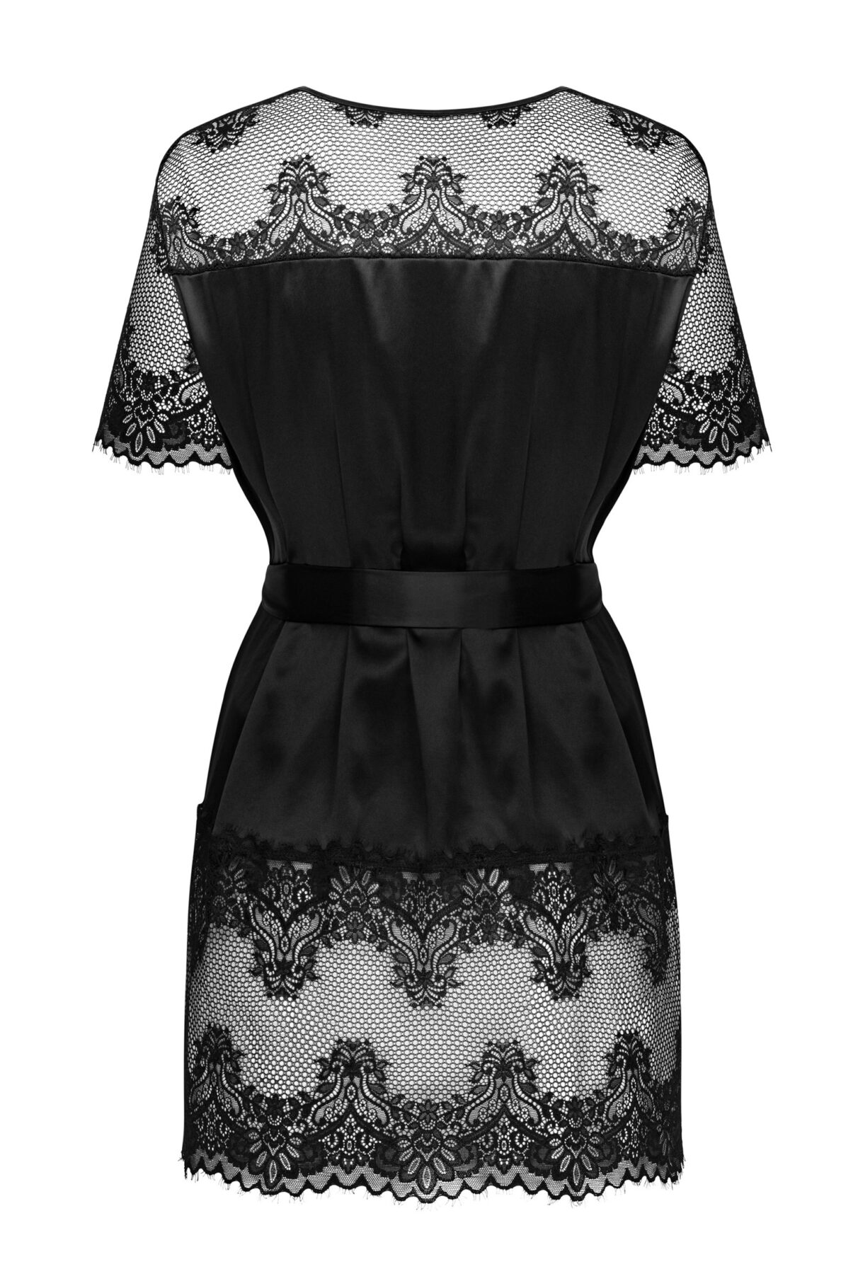 At first glance, the Maderris satin peignoir looks very subtle, but don t let that fool you. Its playful cut with lace inserts will awaken the senses at any time, night or day! See how your neckline and arms could be beautifully accentuated – it s hard to take your eyes off them. And what’s more, all the attention focused on your waist so perfectly! You will surely never want to take it off! Unless…
