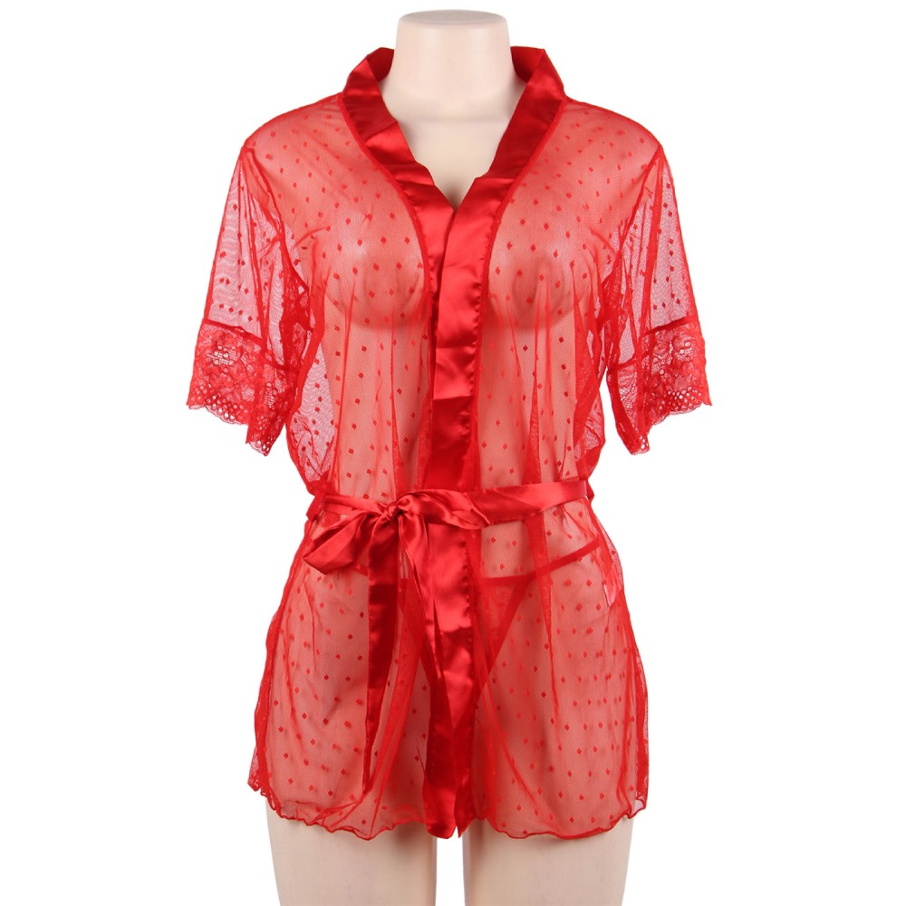 Sexy red mesh robe to wear over lingerie or bare skin