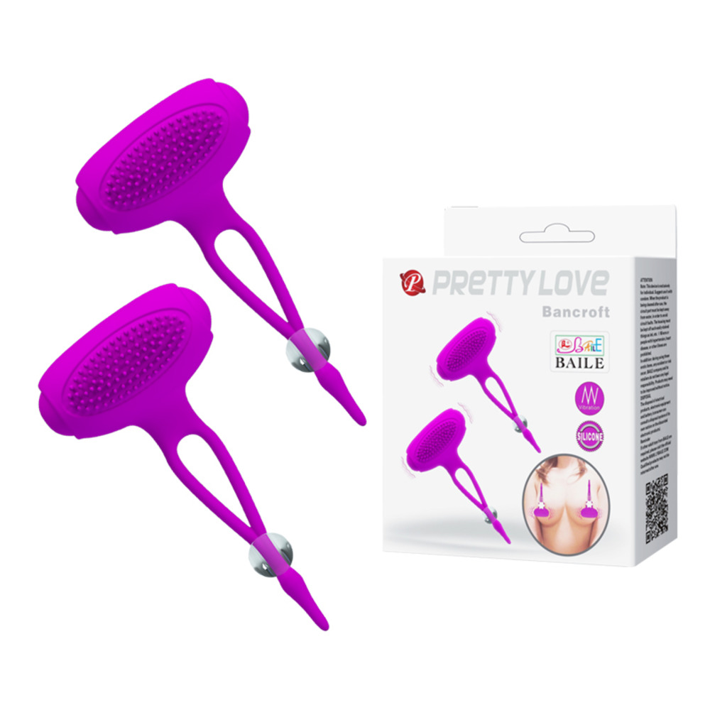 A pair of high quality silicone vibrating nipple clamps by Pretty Love to achieve strong orgasm. Statistics say that 87% of women today must have first the nipples stimulated. Discover fantastic stimulation of nipples with the Bancroft stimulator from Pretty Love going to vibrate your nipples as if it were an earthquake. You can use the nipple muscle stimulator to their naughty secrets or for constant stimulation while penetrating her lover.