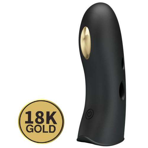 Pretty Love Marico fingering electric shock vibrator. Indulge in the world of electro shock stimulation with this silicone finger sleeve from Pretty Love. The seven electro stims can be controlled by pressing the button at the edge. There are two electric circulations within the toy so the e-stimulation will work with both your inserted finger and the gold plated part where you massage your sensitve areas. Made with a high quality, phthalate free, velvety soft silicone. For internal use, electro toys should only be used with a sterile, water-based lubricant.