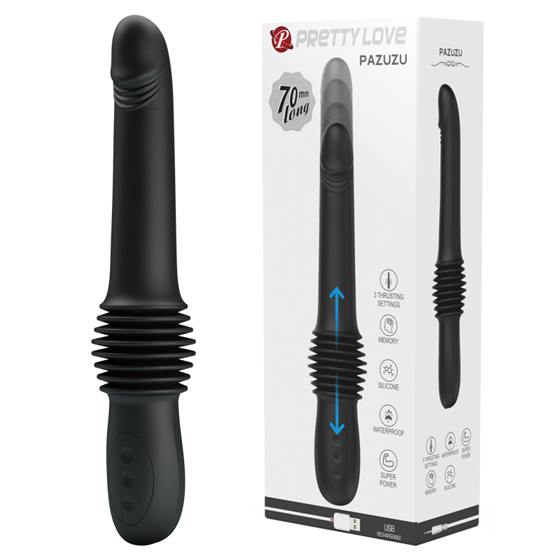 PRETTY LOVE PAZUZU unisex vibrating thrusting up-and-down back-and-forth action Black dildo BW-069006. We at www.sexshopcyprus.com, call it “Portable Fucking Machine”. Portable Fucking Machine – Thrusting Vibrator for Anal and Vaginal stimulation. Ergonomical design to fit into your palm and make sexual fantasies and dreams come true…. into real action… into reality