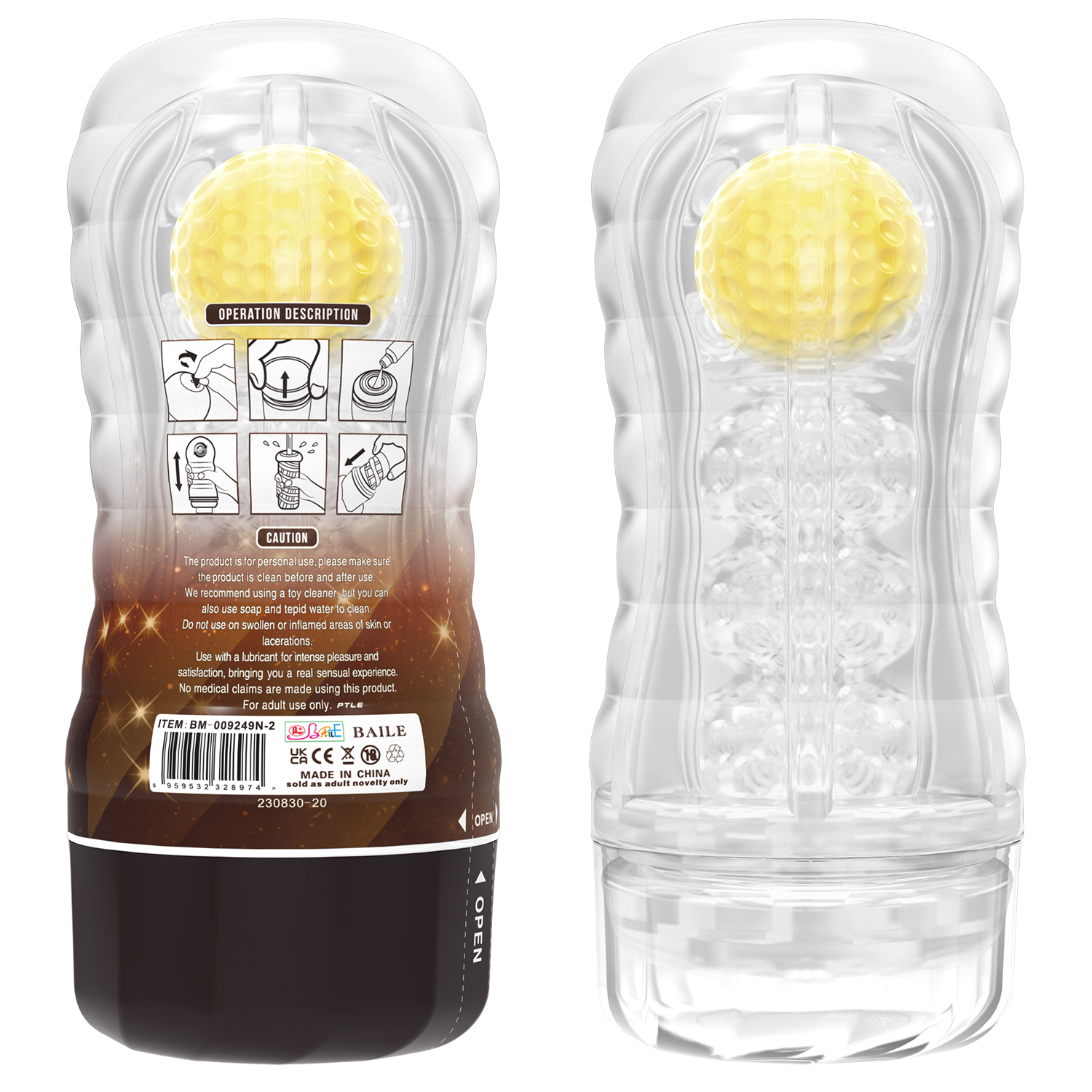 Enjoy deep and satisfying pleasure with this ball-rolling masturbator cup. This fantastic male toy will give you an experience much more than usual. Ultra-realistic entry points plus ribbed and ridged internal sleeves make for the perfect penetration experience while the ball-roling design gives you maximum sensations. Enjoy the textured inner canal until you reach an intense orgasmic release.