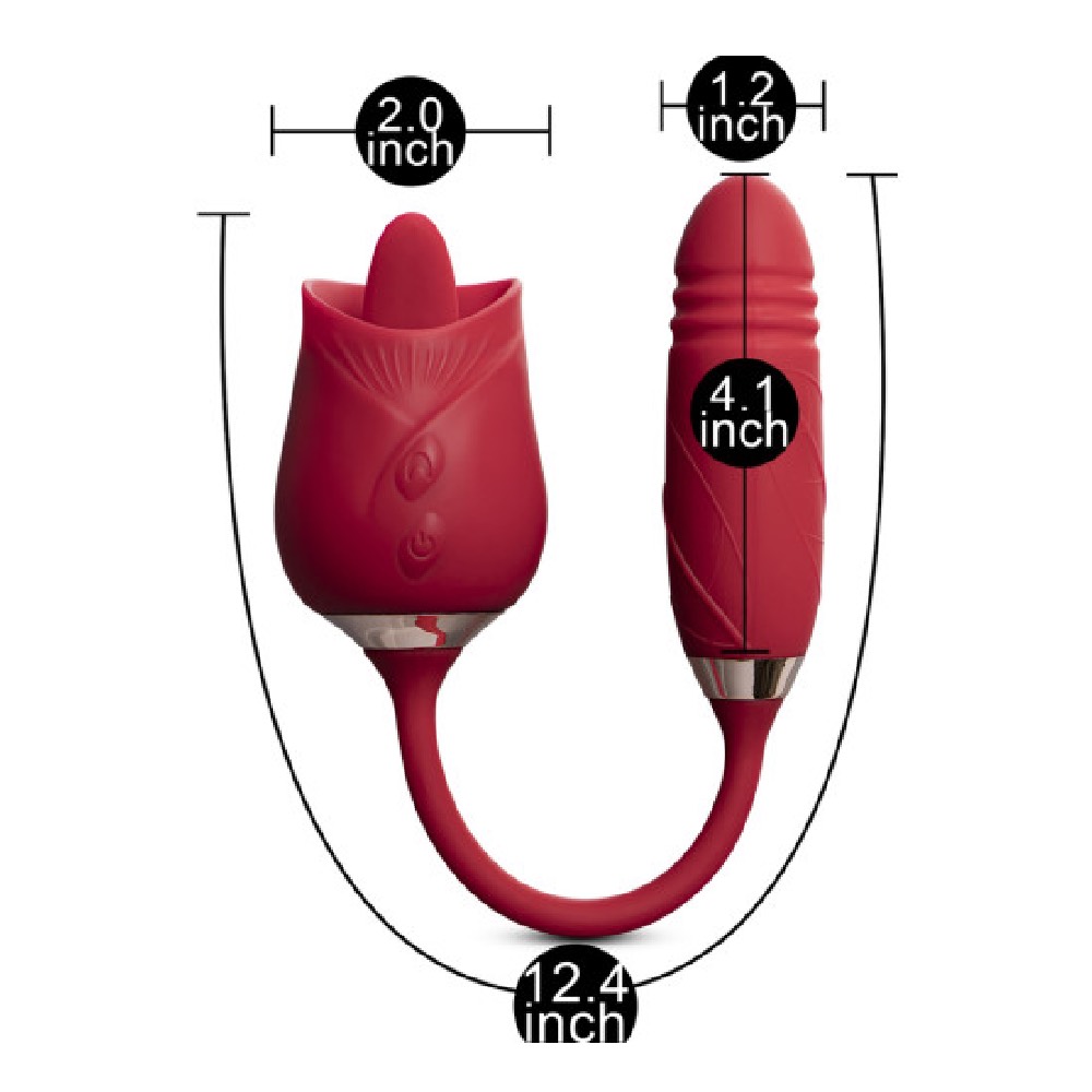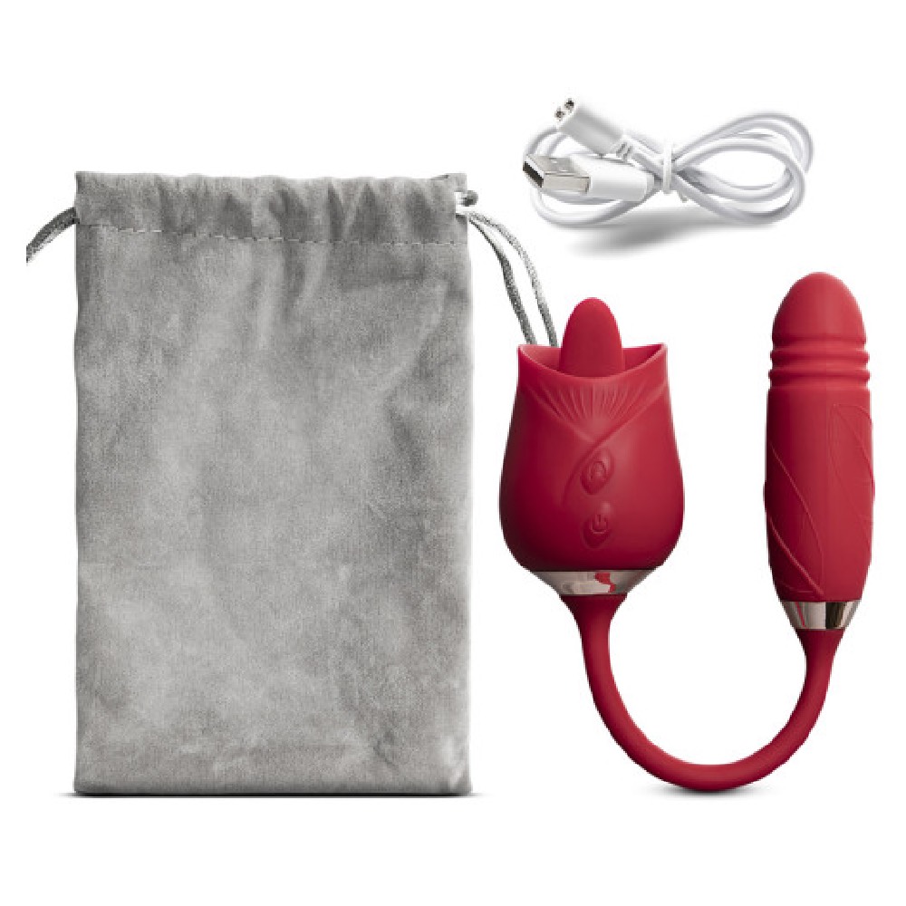 10-Speed Red silicone clitoral licking tongue Rose with a thrusting bullet vibrator to the other end. Ideal for couples and sngle ladies. Combine only with our water based lubricants