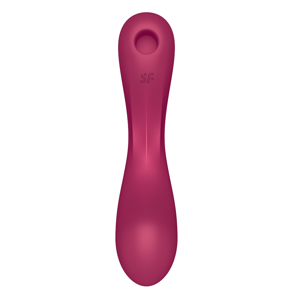 “The Satisfyer Curvy Trinity 1 satisfies your all your cravings with its versatility: The 3-in-1 vibrator is a G-spot vibrator, lay-on vibrator and pressure wave vibrator in one – here to bring you full satisfaction! The Curvy Trinity 1’s special design allows you to make use of the whole device and lets it reach its full potential: Place the opening of the shaft on your clitoris and enjoy touch-free stimulation with our beloved Air Pulse Technology. If you prefer clitoral stimulation through intense vibrations, you can also use the toy’s middle part as a lay-on vibrator, as the curved shape perfectly hugs your vulva. Can’t make up your mind? No problem – both features can be controlled together or individually, letting you pick your favorite combination of 12 vibration and 11 pressure wave programs. If you’re more in the mood for deep and intense vaginal pleasure, you can also insert the other end of the shaft to massage your G-spot. The vibrator’s curved shape and rounded tip will find your G-spot with ease and treat it to exceptional enjoyment. “