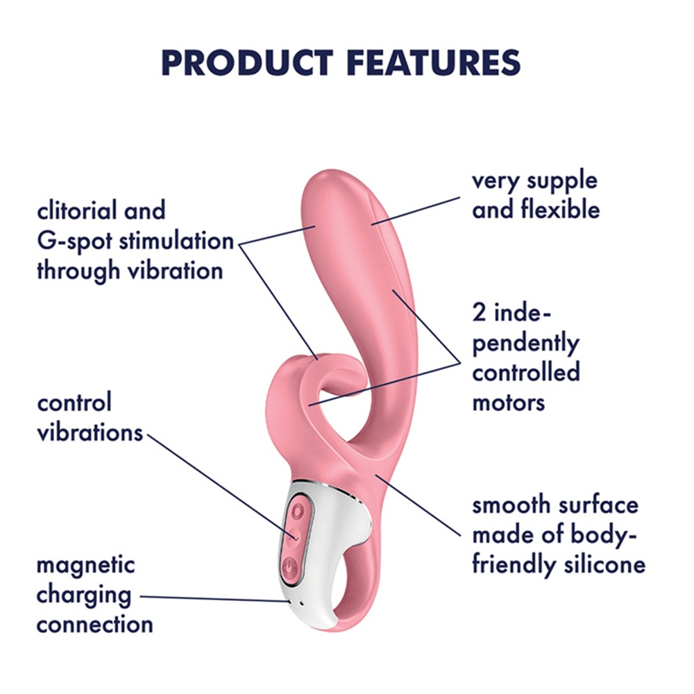The Hug Me rabbit vibrator is compatible with the award-winning, free Satisfyer Connect app, offering countless possibilities for fun: Enjoy pleasurable vibrations to your favorite beats by connecting to Spotify or create your own personal vibration patterns as you like. You can also let your lover control the vibrator with the app, giving them complete control over your pleasure. There are no limits to the imagination here!