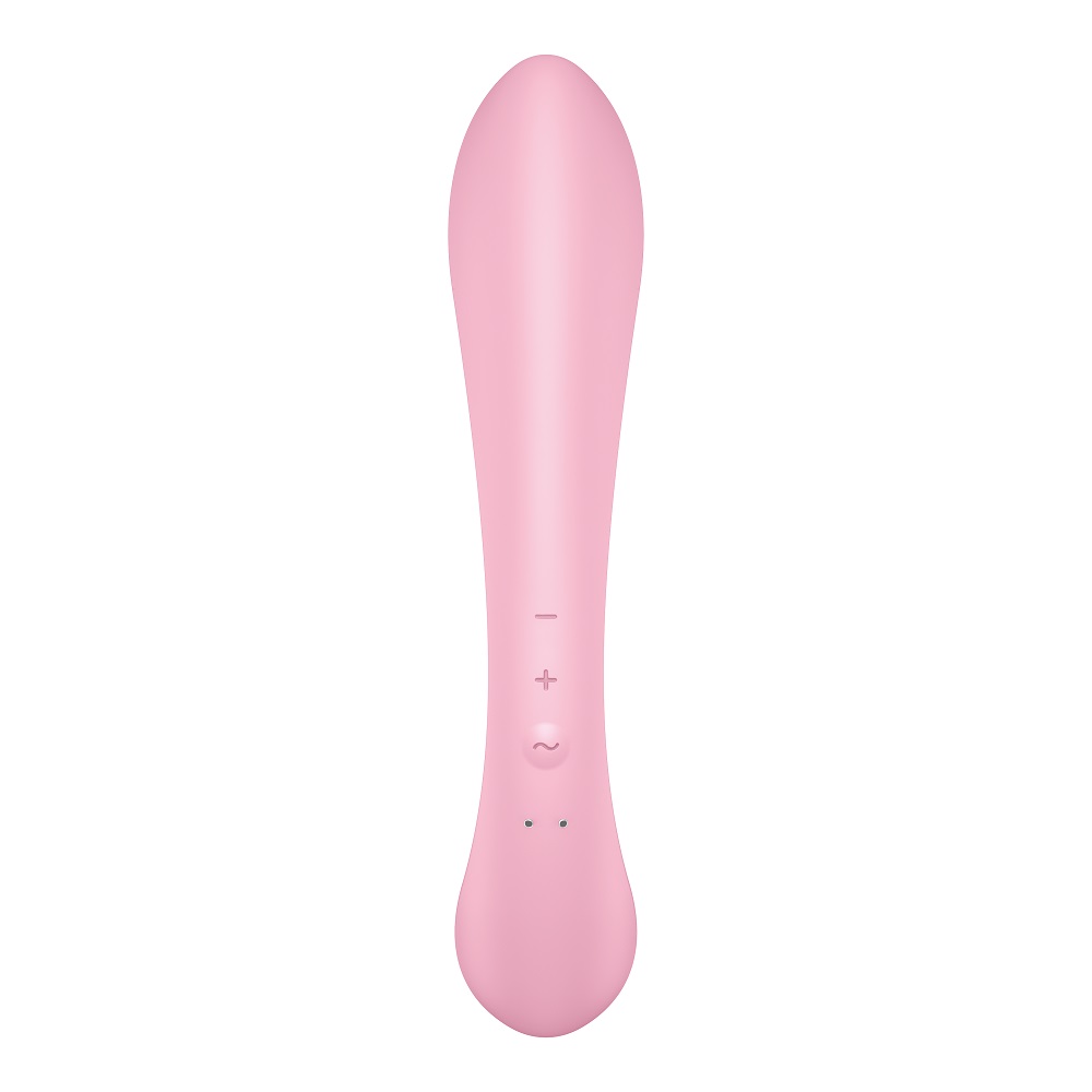 Oh, oh, ohhh yes! With 3 powerful motors, the versatile Triple Oh by Satisfyer can be used as a rabbit-style vibe to arouse your G-spot and clitoris or use the opposite end as a massage wand. The massage wand is perfect for full-body massages or to explore any erogenous zone. Rather a connoisseur’s product, the Triple Oh will bring your pleasure experience to new heights. Both the edged shaft as well as the pointed massage head are slightly flexible but stay firm in place for ease of handling. With 3 powerful motors, independently control the rabbit motors and the wand motor. Use the +/- buttons to control the 12 vibration programs of the rabbit, and the ~ button to control the additional 12 vibration programs of the massage wand. The Triple Oh is made of body safe silicone, is rechargeable and waterproof (IPX7). Oh, yes indeed!