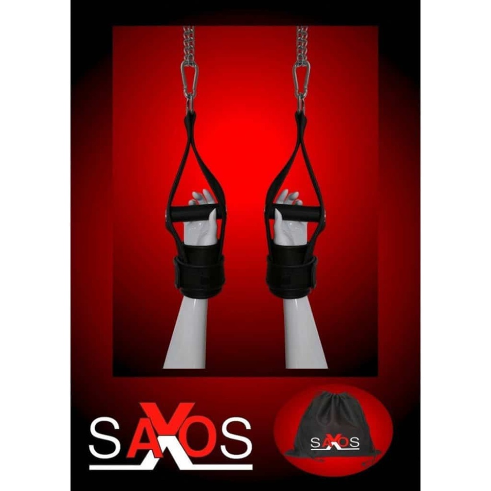 Hang up your partner in stylish way! Black 10 cm wide handcuffs with stable D-shaped rings that mean that you can hang your partner up. The handcuffs have hook and loop fasteners, which means that they are adjustable and they also have metal handles that are covered in material. The inside of the comfortable handcuffs are made out of soft smooth leather and the outside is made out of fabric and has a leather border. Leather, polypropylene, metal, phthalate-free according to EU Regulation REACH.