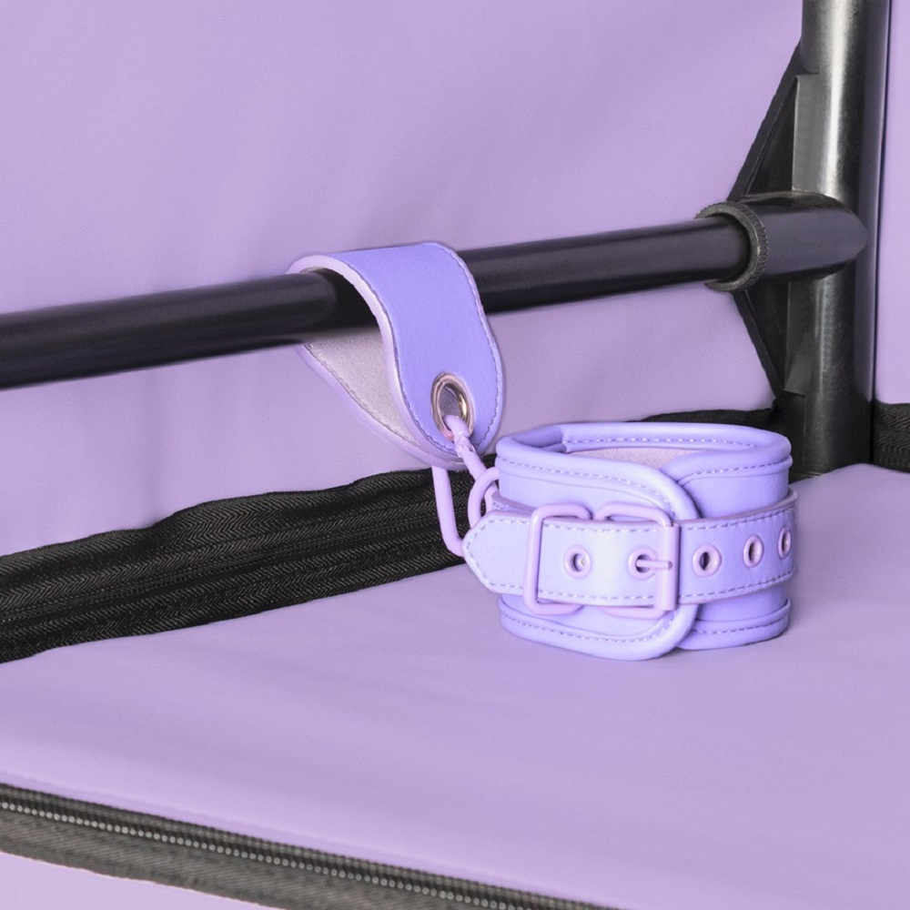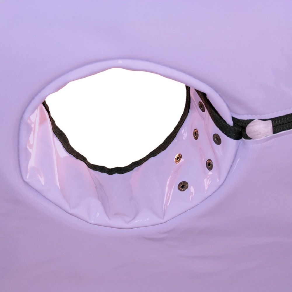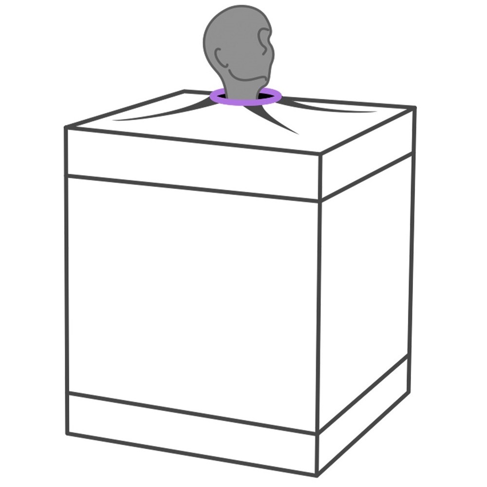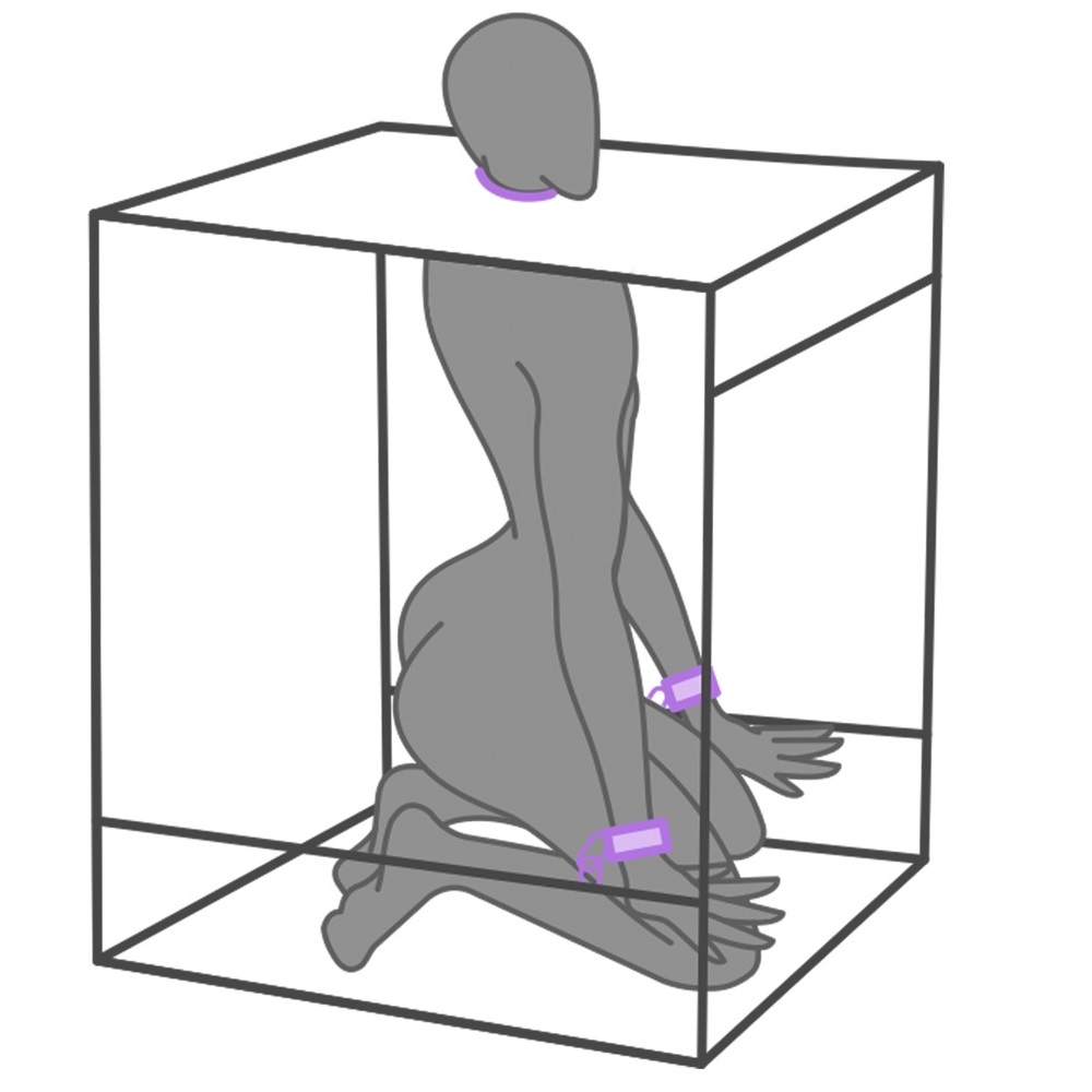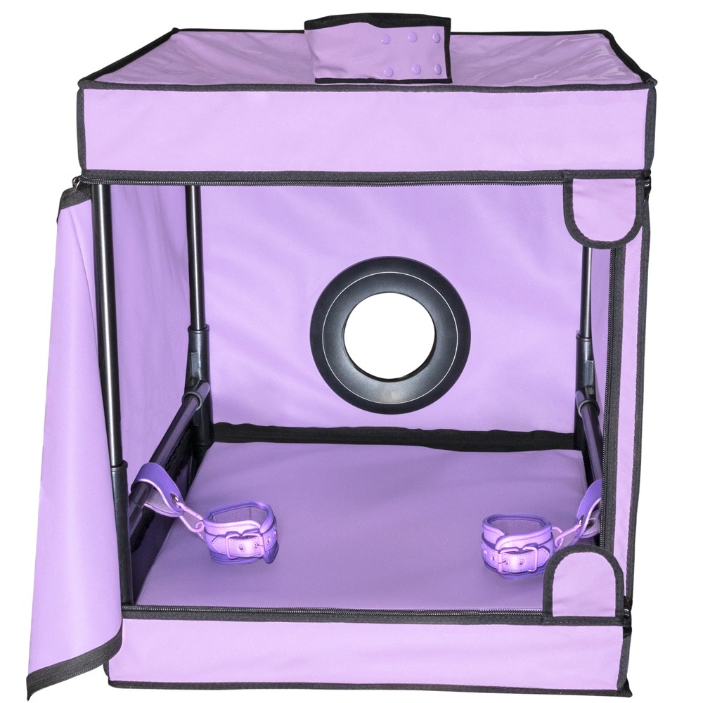 The closed BDSM box, Bukkake from Secret Dome, is perfect for imaginative games that are out of the ordinary. The sturdy box with its tube plug-in system and robust cover can be quickly assembled and will be ready to use in no time at all. With a large hole at either side. The hole for the head has a zip and a wide, adjustable collar. It also provides convenient access via the zip door. The LED lighting and a soft floor mat ensure great comfort. The included handcuffs can be positioned inside as required. The soft padded restraints can be put on and adjusted quickly with the buckle fasteners.