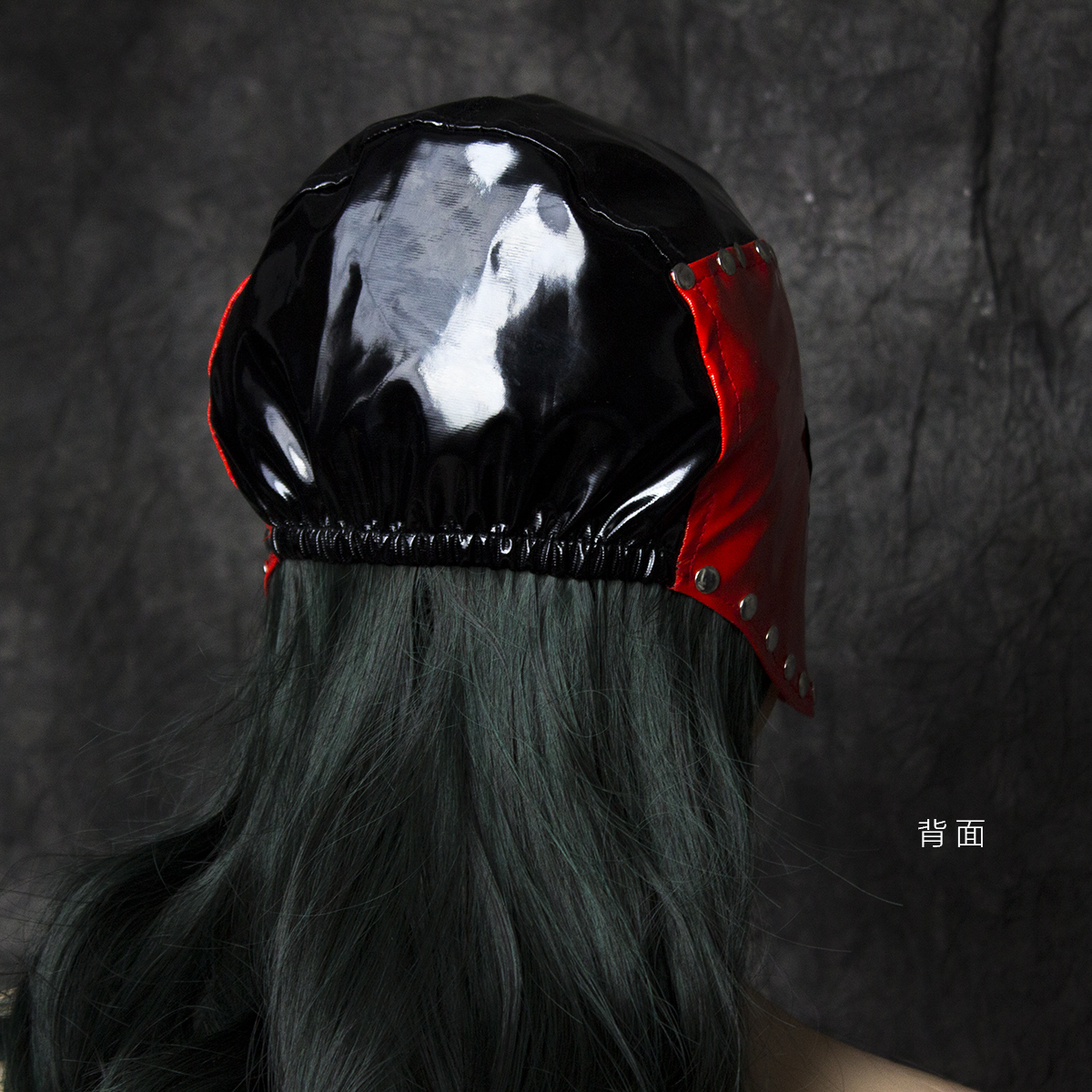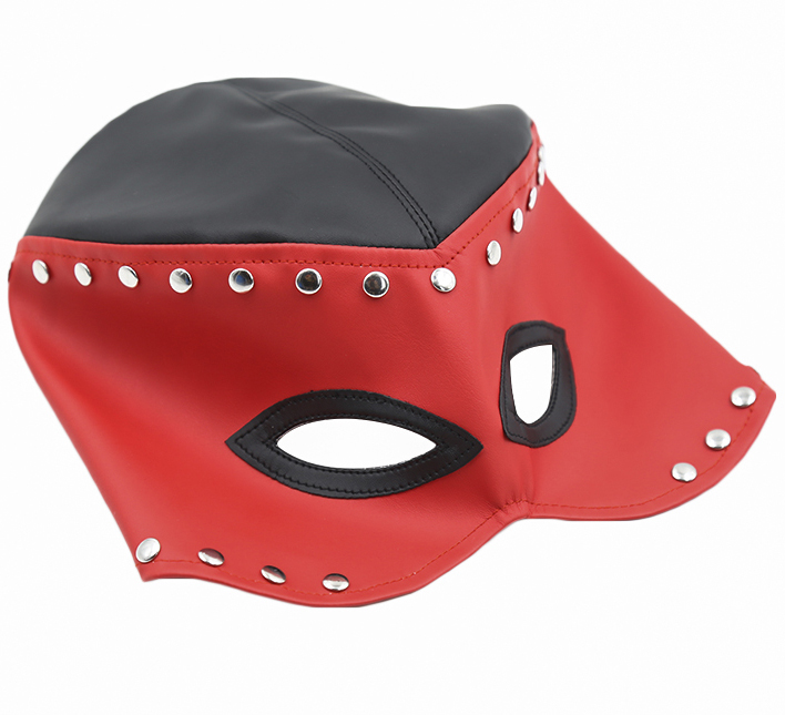Shiny Red light pvc hood with contrasting black trim around eye openings. One size. fetish cospay. This hood was designed in such a way, to fit almost any play role. Catwoman, butterfly, carnaval, fetich party accessory up to swingers descreet party appearances.