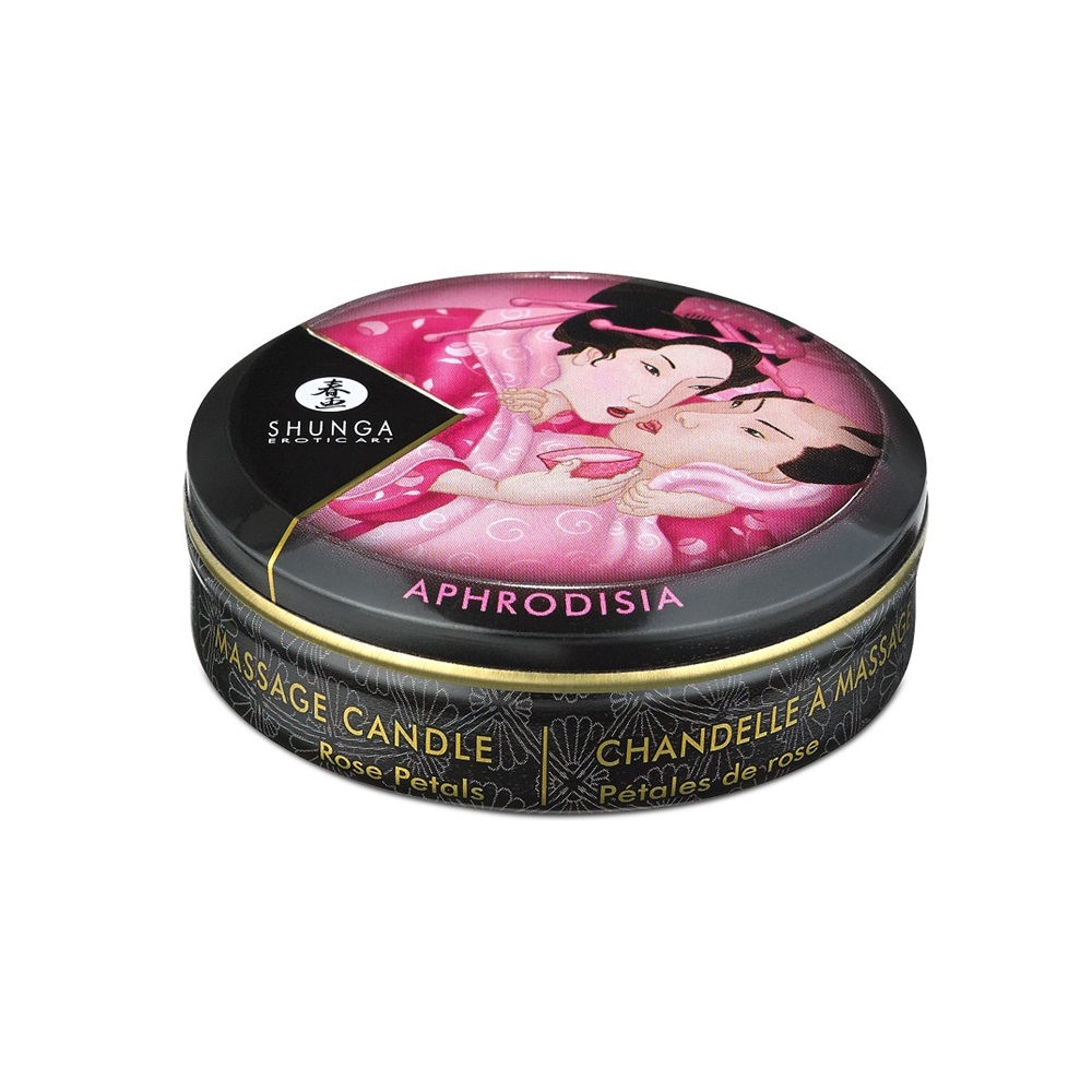 Stored in a tin decorated with erotic Japanese art, this candle can be light for approximately 20 minutes to provide a sexy scent. The warmed liquid wax can then be carefully poured into a palm to be used as massage oil.