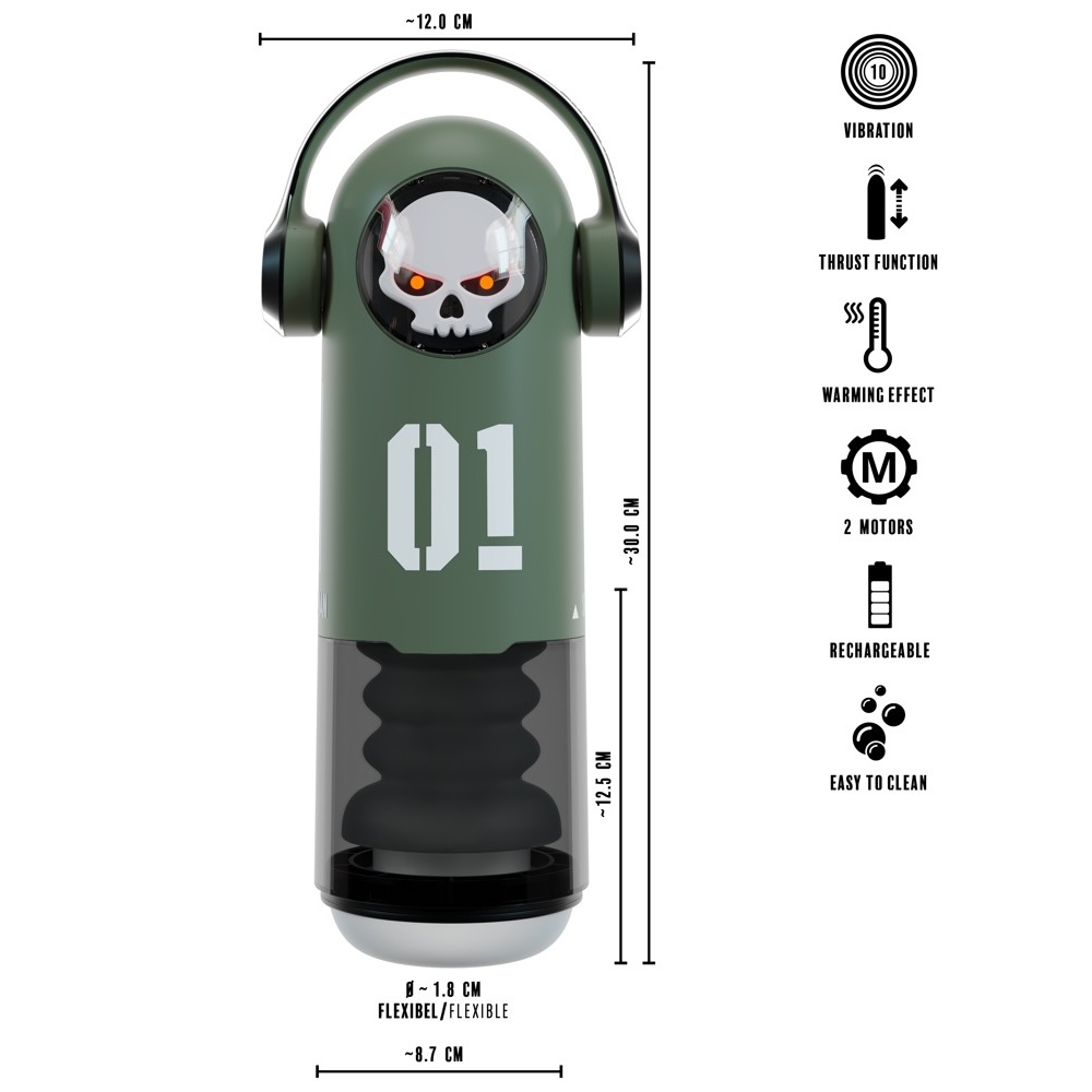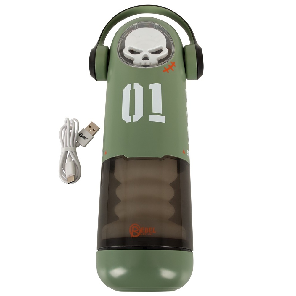 The easy-to-hold SKULL Masturbator with 3 Functions from Rebel in a stylish skull look. It will pleasure the entire penis with penetrating vibrations and a powerful thrusting massage. The warming function quickly gets the masturbator to the right body and operating temperature – and makes the skull’s eyes glow red. The perfect combination of innovative technology and unique design. For unforgettable climaxes!