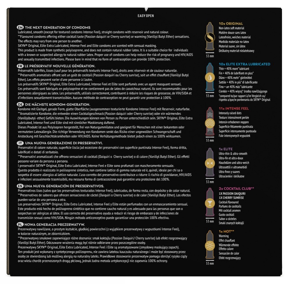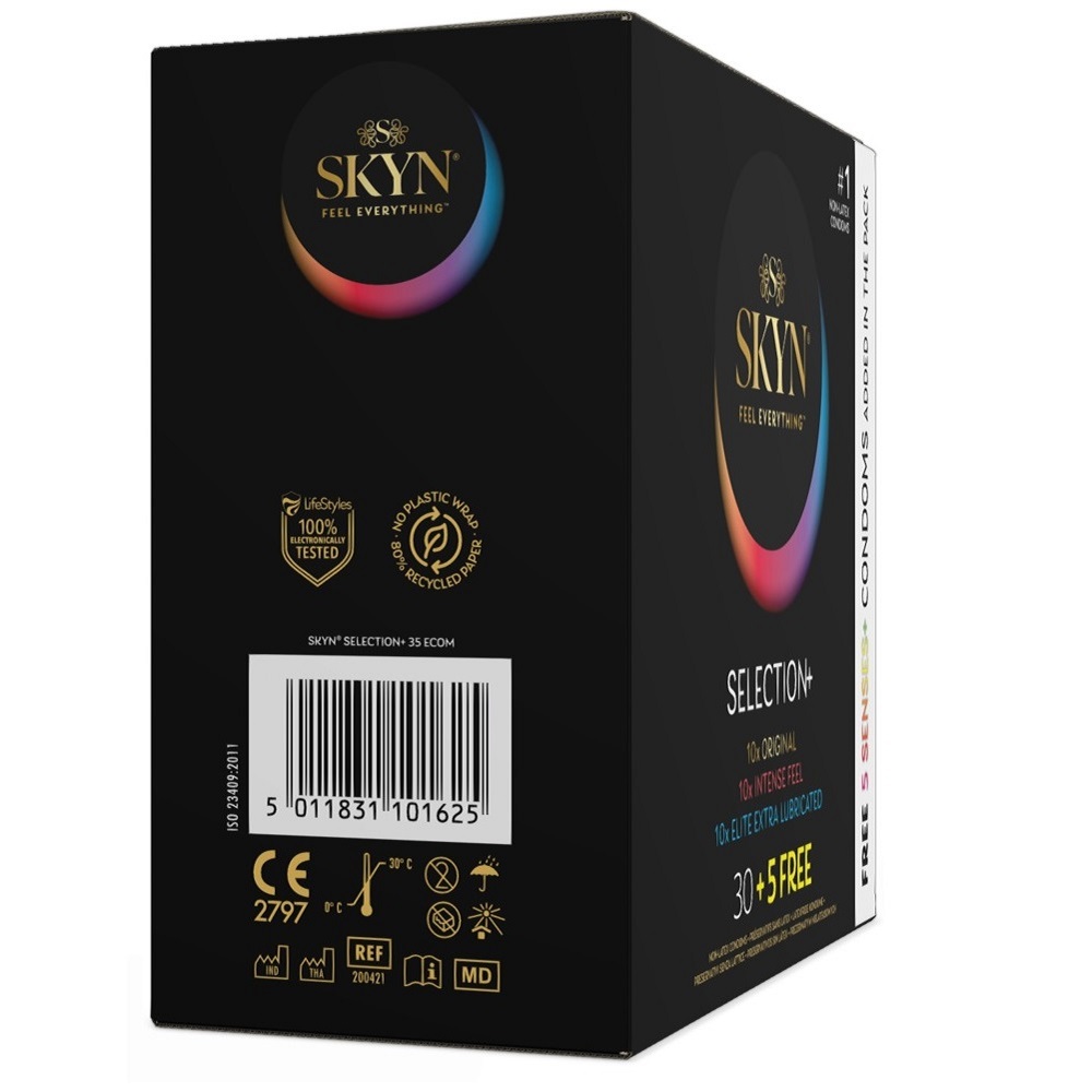 The condom mix Selection+ 30+5free from SKYN has 35 different condoms in total: