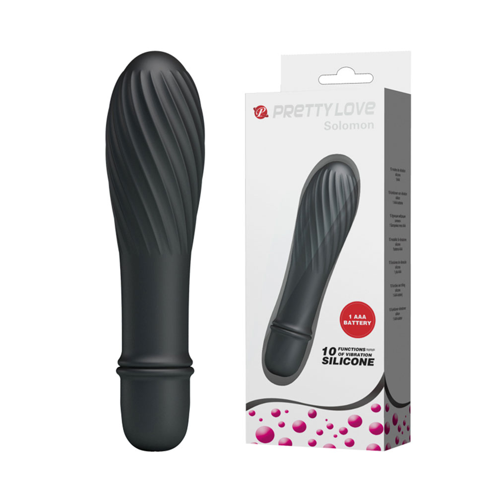 Pocket size, Pretty Love Solomon, Black vibrating silicone Bullet 13cm. Small compact size 13 cm luxurious powerfull, twelve Vibrating functions, Black bullet Vibrator, made out of 100% pure medical grade Silicone. Absolutly discreet. Super fucking powerfull vibrating modes and level of tension. High quality Japanese made motor.