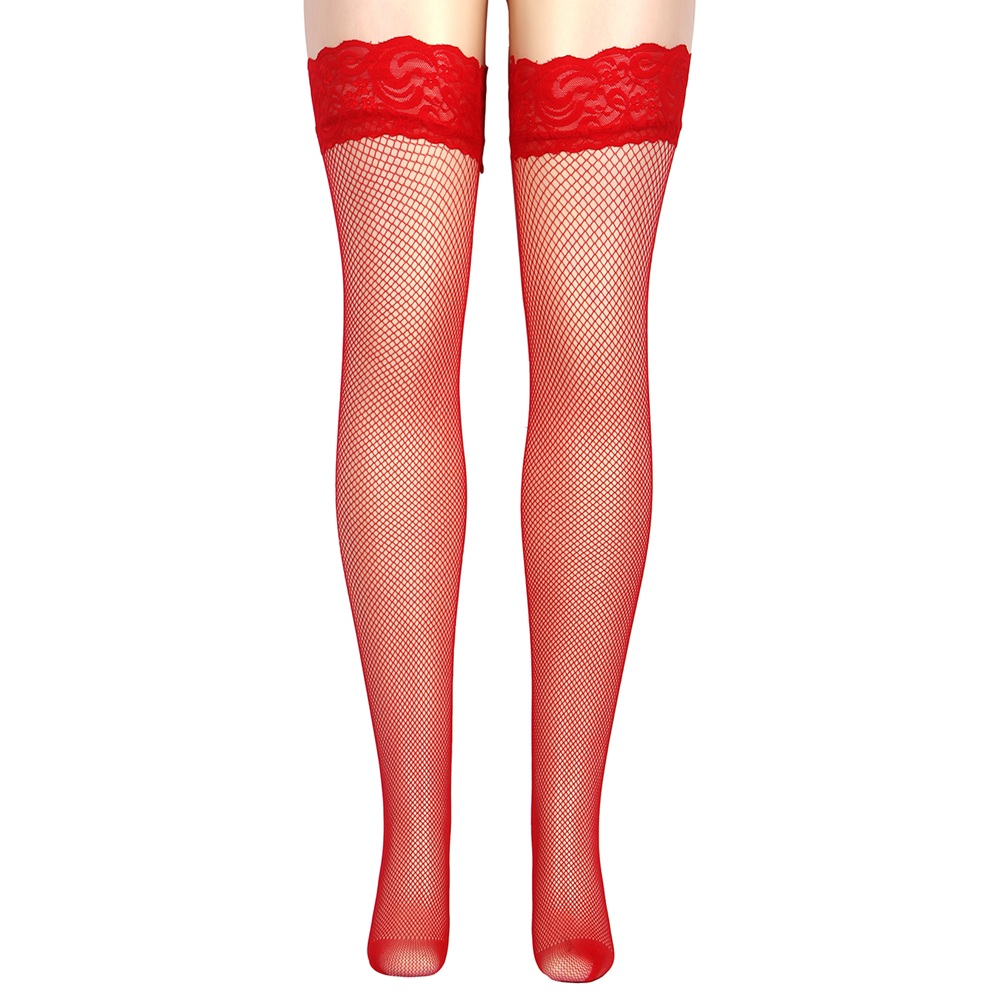 These red fishnet thigh-highs blend bold style with everyday comfort. Featuring a beautiful floral lace trim and a hidden non-slip silicone grip, they stay securely in place all day or night. The high-elasticity nylon-spandex fabric ensures a soft, snug fit that perfectly contours your legs for a sophisticated finish.