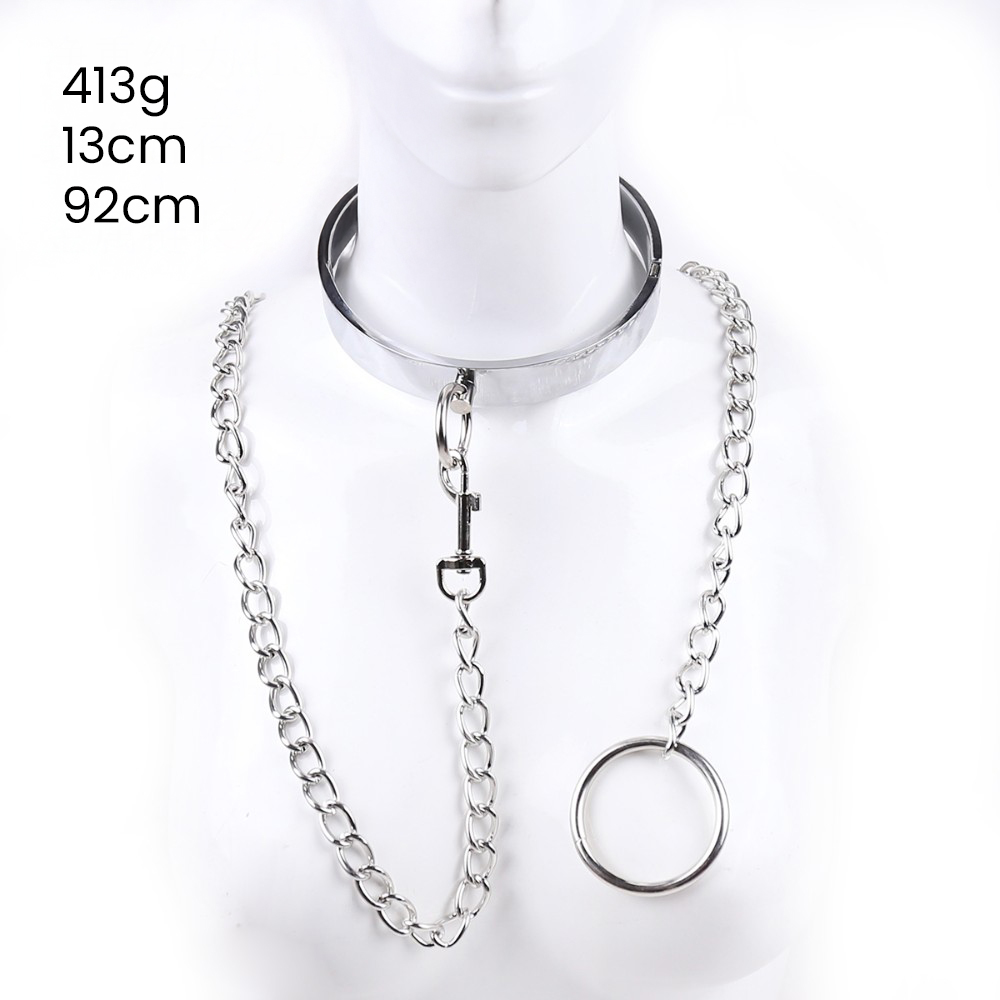Steel neck Collar with chain leash – Medium SIZE for serious bondage players