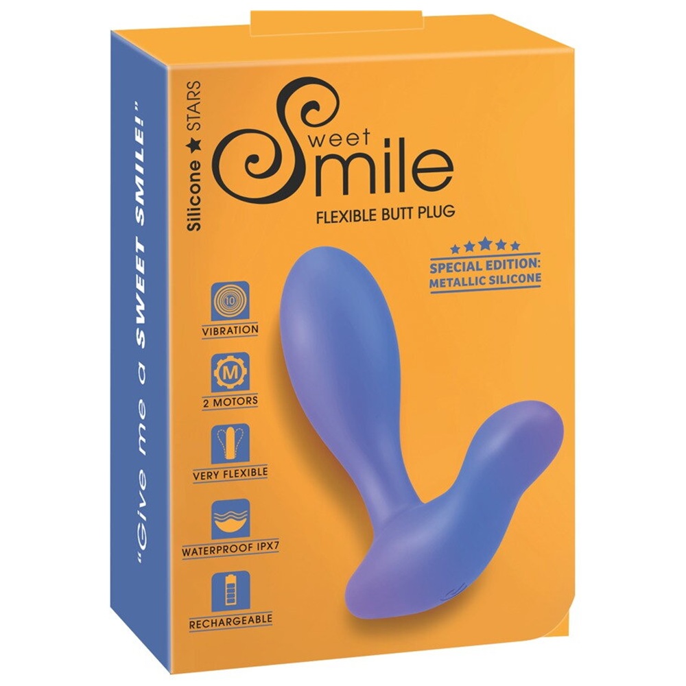 Sweet Smile silicone vibratig flexible butt plug is unisex. Designed to satisfy both genders, analy and vaginaly. Prostate and G-Spot. The 2 motors provide reliable power – there is one in the plug and one in the perineum stimulator. This means that the 10 quiet vibrations modes can be felt intensely both inside and out. The modes can be easily adjusted with the buttons at the bottom of the toy. The modes can be controlled together or separately. The beautiful anal vibrator can also be used in the bath or the shower because it is waterproof.