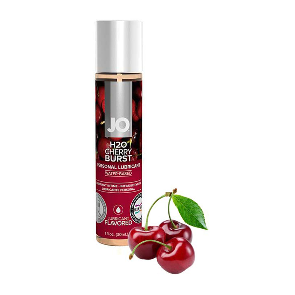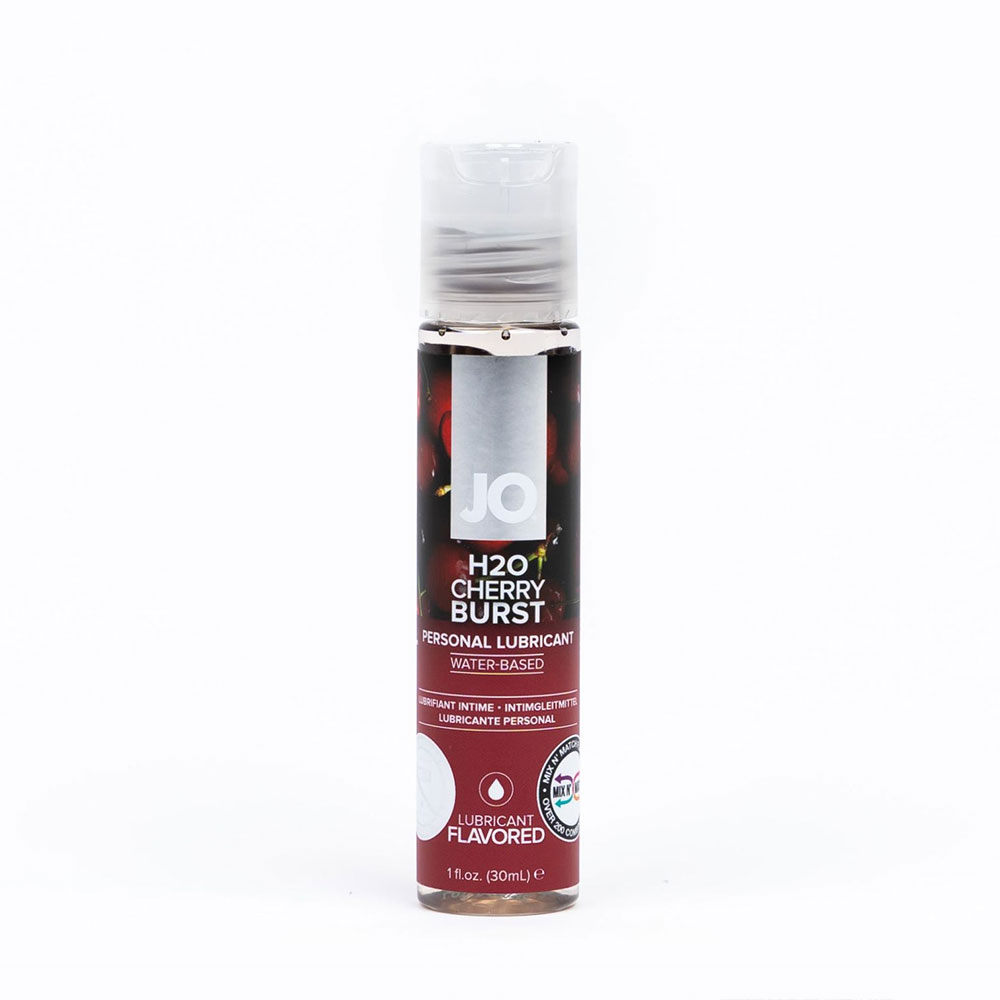 Turn your partner into a sweet, ultra juicy treat with Jo Cherry Burst Lubricant. Playful way to tease your appetite for each other. This water based flavored lube is condom safe, toy friendly, and can be used by women or men to add extra enjoyment to oral play. Jo uses natural flavors for their lubricant to give them a superior mouthwatering taste that ll have you coming back for more! Jo water based Flavored lubricants are so delicious, you can even drizzle them over vanilla ice cream!