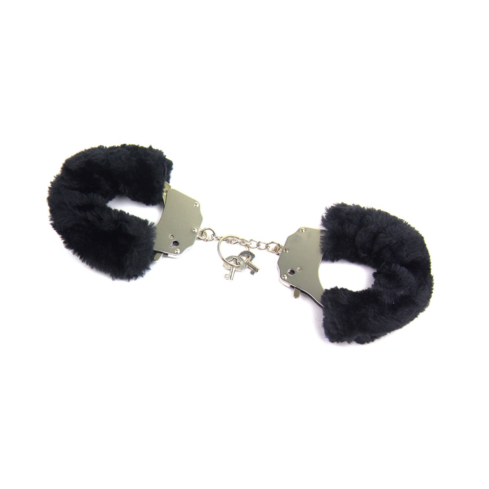 - Adjustable metal hand cuffs with removable soft feather cover