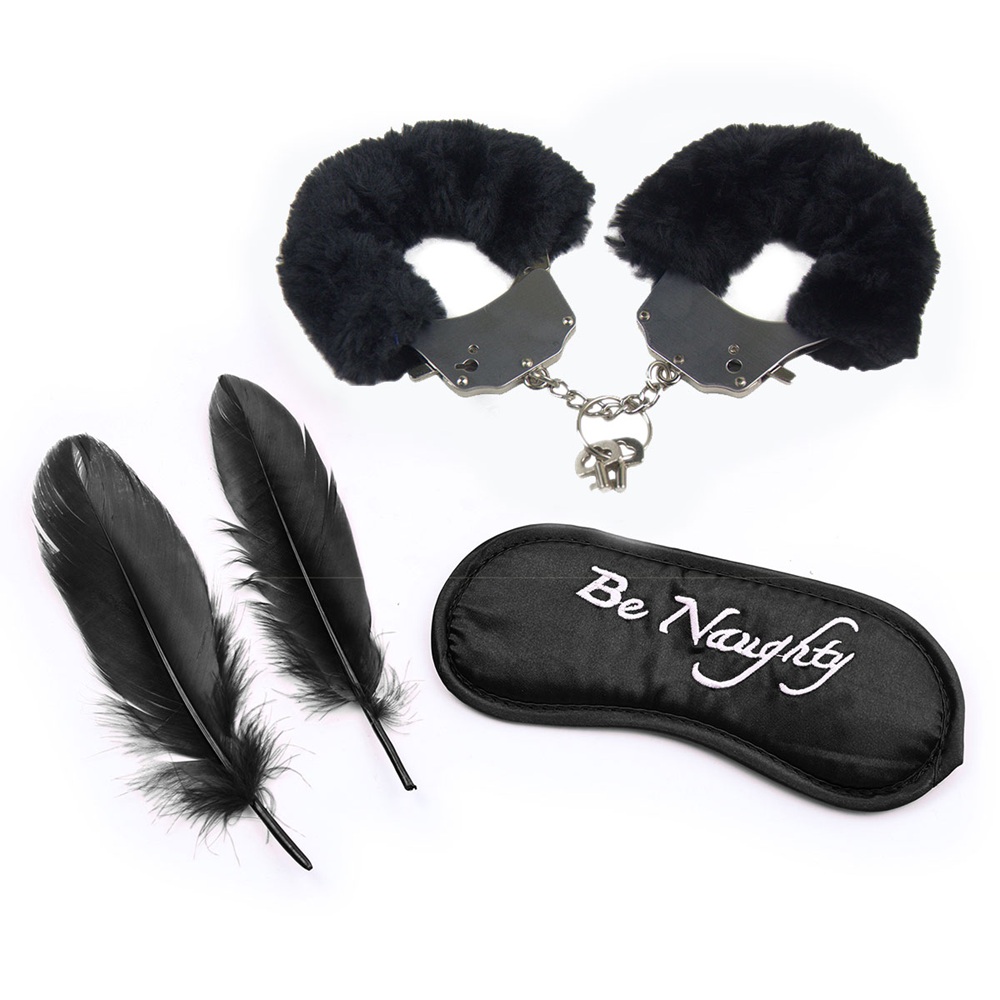 We have the pleasure to introduce a new element of pleasure to your bedroom. Take a small walk on the wilder side of your fantasies. Close the eyes of your lover with this padded, soft black eye mask. Block your vision to create a sense of isolation feeling. Lock up her hands with soft fur covered metal handcuffs and start to tease her with this super soft feather. Run this tickler across your loved one body, arouse her senses.