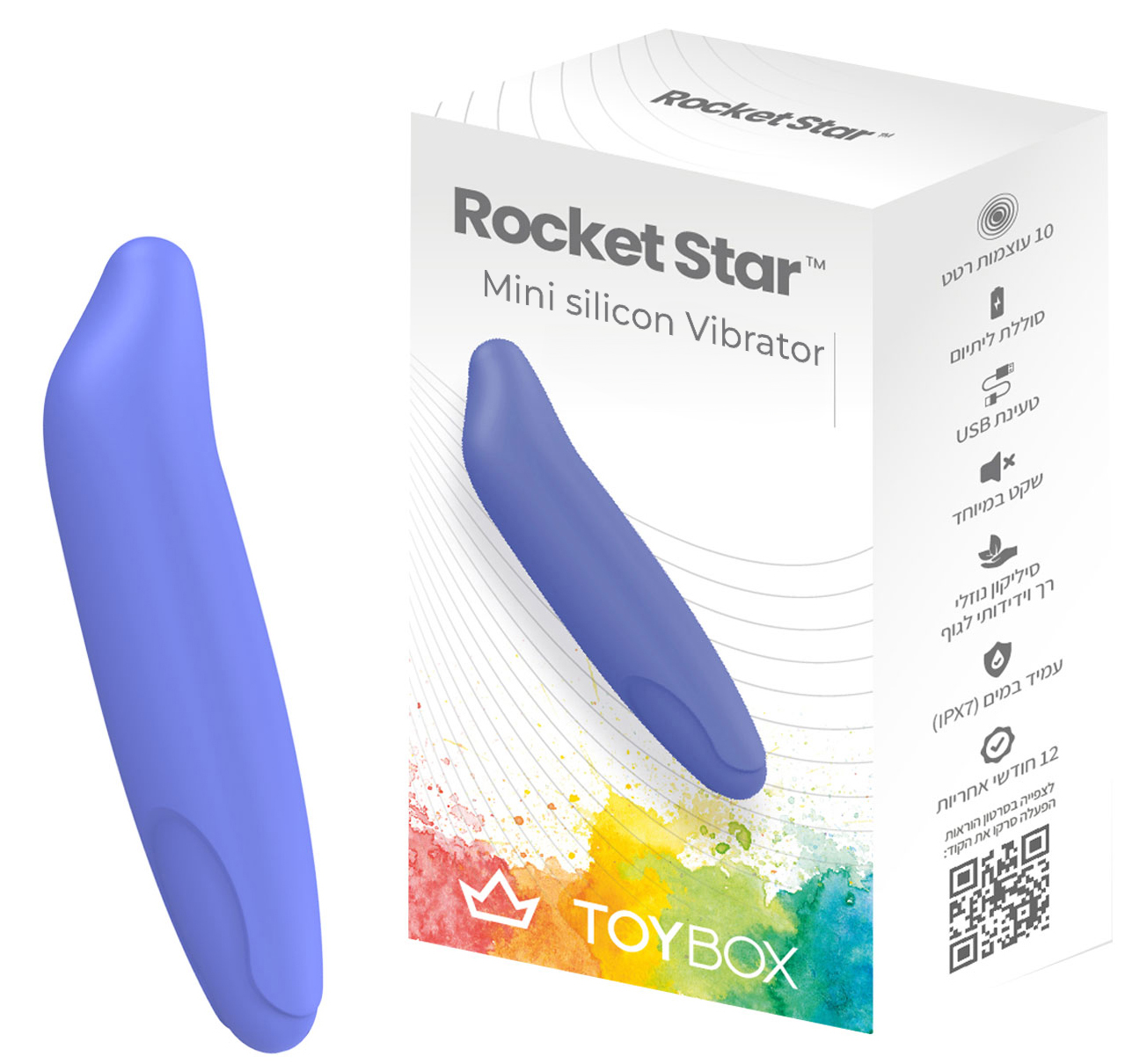 Each package contains: Mini Rocket Star vibrator, charging cable, luxury storage bag and operating instructions in Hebrew English.