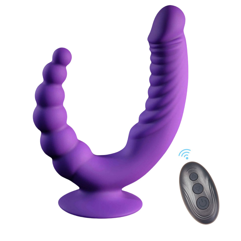 Versatile Double Dildo: Double ended dildo, designed for both solo and partnered pleasure. Each insertable end features powerful vibrations, making it a premium choice among lesbian toys or couples sex toys. The double sided dildo combines a realistic shaft with anal beads texture, stimulating both vaginal and anal zones. Whether used as a strap on for partner play or solo exploration, this double headed dildo delivers deep, satisfying sensations.