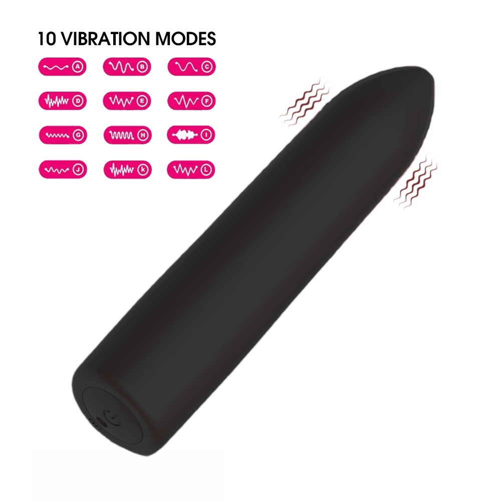TOYBOY Black Rechargeable Silicone Bullet Vibrator. Experience intense pleasure with this powerful mini vibrator, designed to stimulate the G-spot and clitoris with 10 unique vibration modes. Pocket-sized, stylish, and USB rechargeable, it’s perfect for both solo and couple play whether you’re a beginner or a pro. Crafted from premium, body-safe silicone and ABS, this discreet bullet vibrator delivers versatile sensations, from clitoral to nipple stimulation. A must-have for any adult toy collection, it enhances intimacy, connection, and personal exploration.