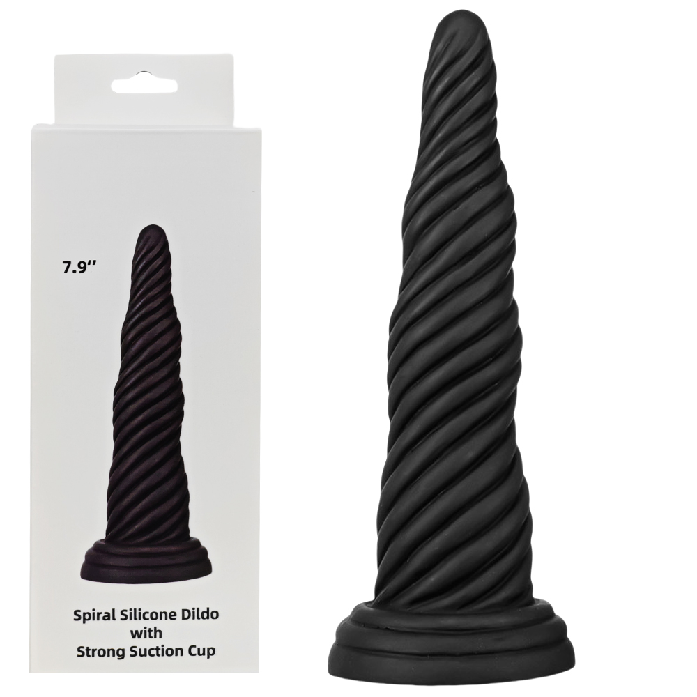Twisted Black Silicone Dildo – Unique Spiral Design. Discover a new level of intensity with this black spiral-textured dildo. Crafted from medical-grade silicone, this visually striking toy features a twisted ribbed design that delivers thrilling stimulation with every movement. The powerful suction cup base offers hands-free options and strap-on compatibility, while the fully waterproof body makes it perfect for bath or shower play.