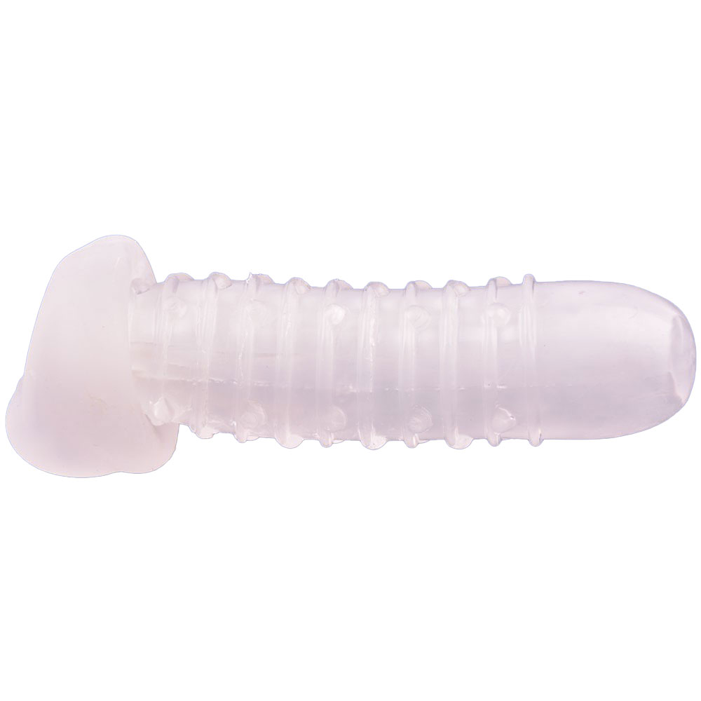 The TOYBOY STRETCHY penis sleeve with inner soft texture 15cm will Instantly give volume, extra diameter, to your penis. Super soft penis enlargement sleeve from TOYBOX. Easy to wear. Combine with water lubes for even more comfortable penetrations.She will feel you!! Almost clear see-through penis sleeve with inner texture for extra pleasure.
