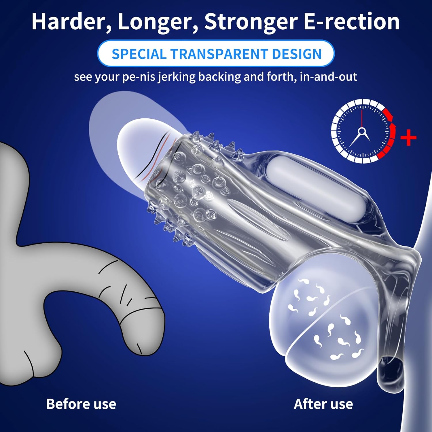 Soft and High-Elasticity Material & Fit All Sizes & Transparent Design: Crafted from premium TPE material, our penis sleeves are both safe and comfortable to wear. It is stretchy. The cock and ball ring is designed to accommodate all sizes. Its flexible and stretchable silicone design ensures a snug and pleasurable fit. The transparent design definitely helps to spice up your sex life.