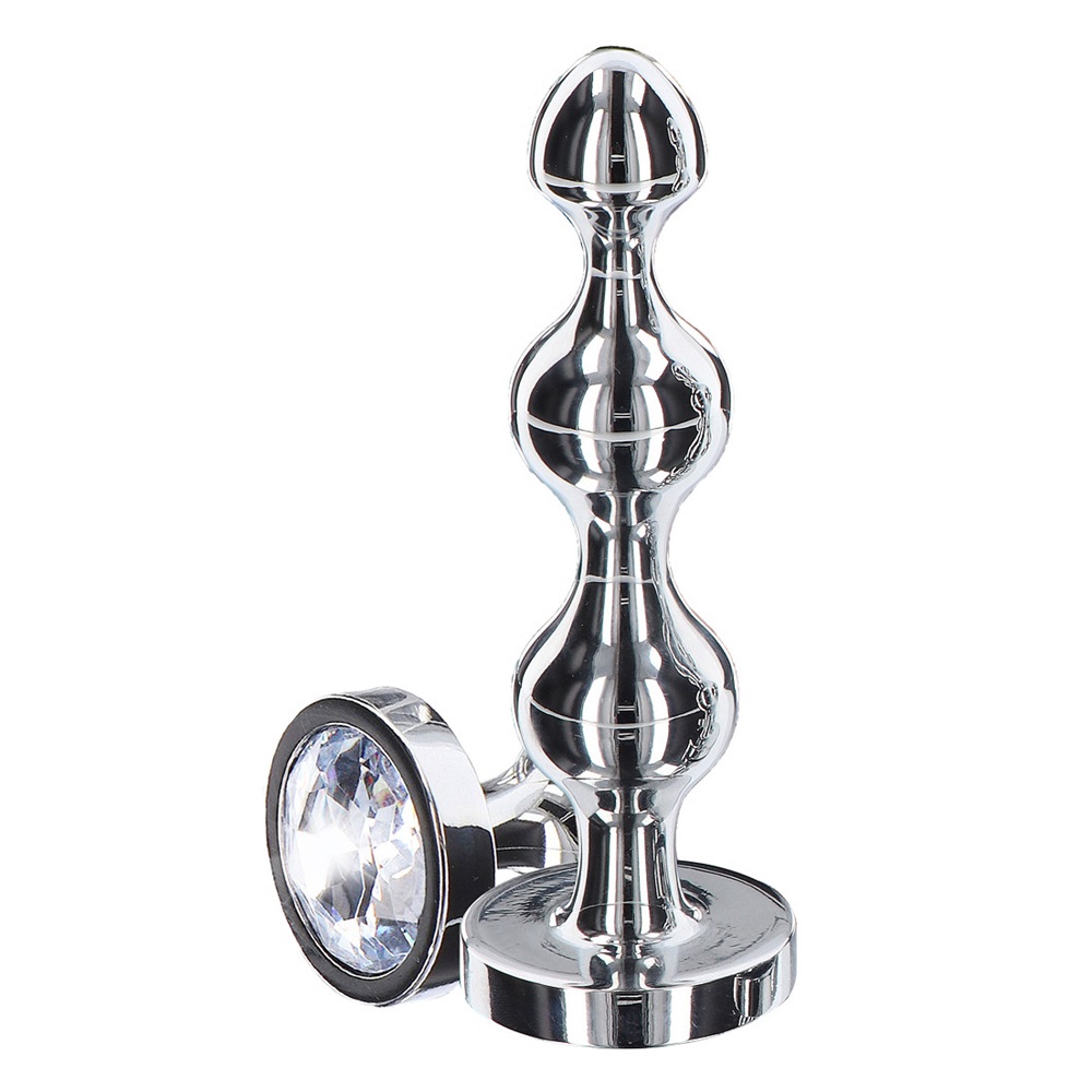 The plug’s design includes three progressively larger beads, providing thrilling stimulation with each use. The flared base, adorned with a dazzling jewel, ensures safety and a touch of elegance. Crafted from smooth, body-safe aluminum, this plug offers a luxurious feel and lasting durability.