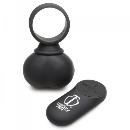 Attach the Trinity Men Vibrating Balls with Remote L onto the dildo – dong of your strap-on and let these balls swing