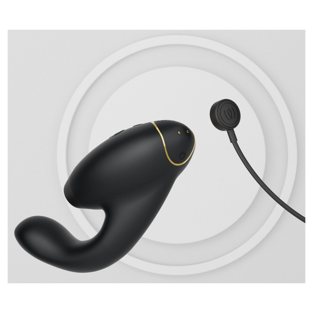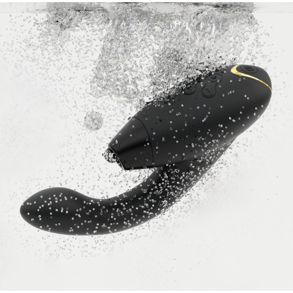 Womanizer Duo 2 Clitoral and G-Spot Stimulator Black, pleasures with pressure waves and vibrations! Ergonomically shaped pulsator for a simultaneous stimulation of the G-spot and clitoris: with the classic Womanizer clitoris attachment that pampers the female pearl of pleasure with the patented Pleasure Air™ technology. The DUO also has a vibrator arm, which flexibly adapts to the female body shape – this allows for an optimal stimulation of the inner hot spot.