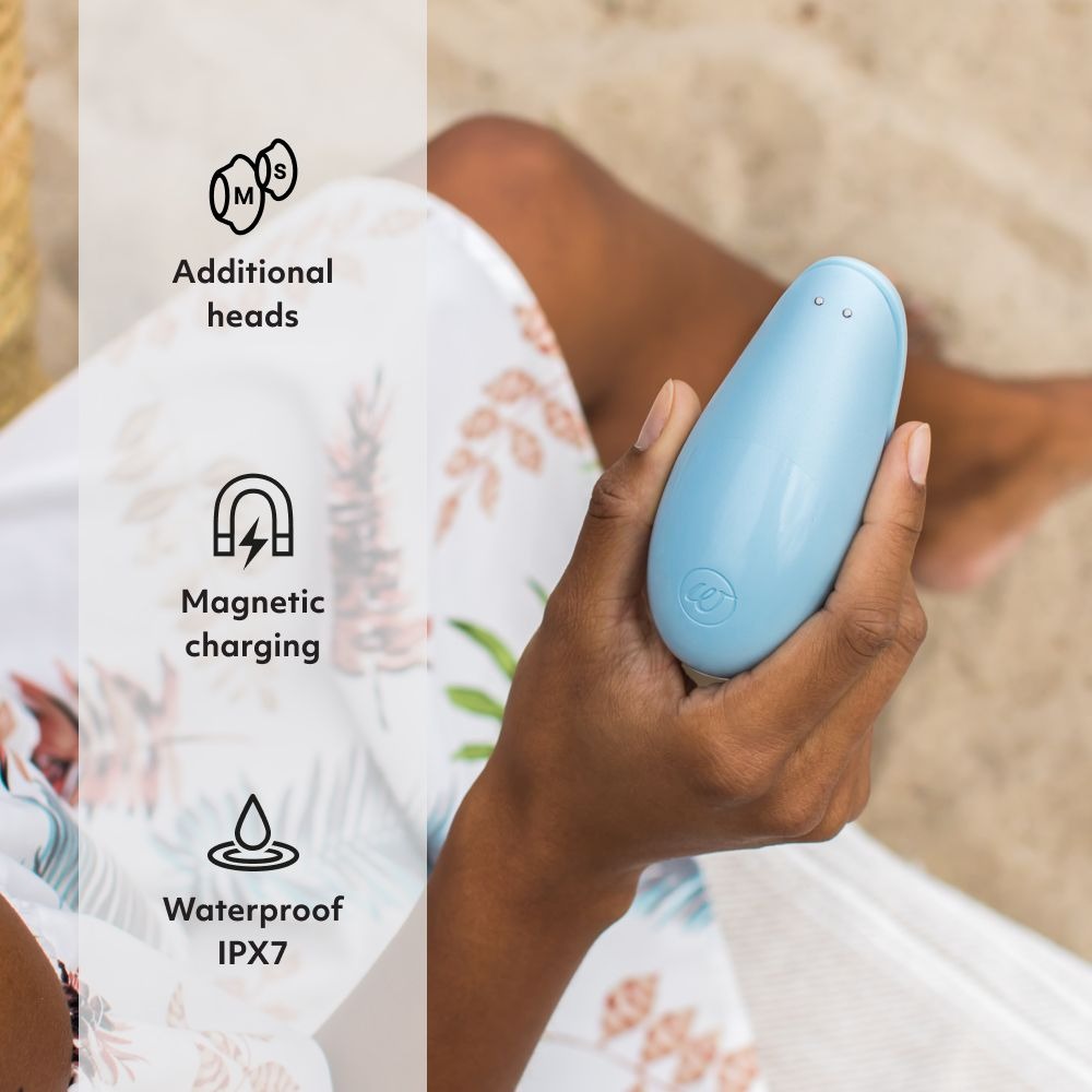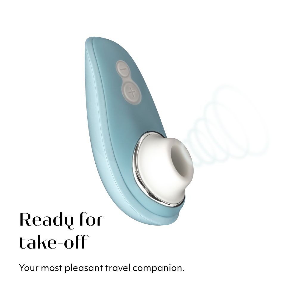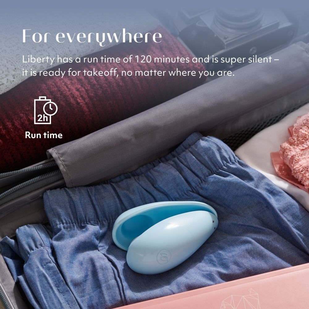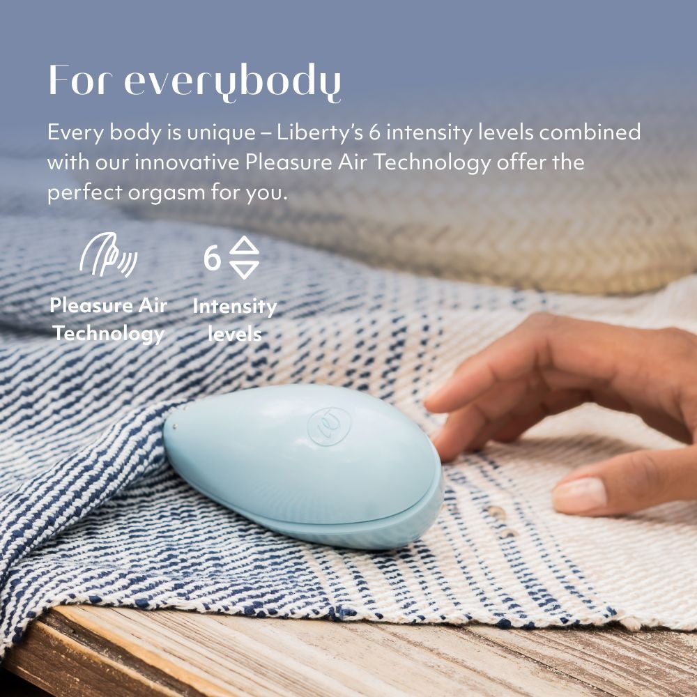 Womanizer Liberty Blue stylish travel sizerechargeable, waterproof clitoral stimulator with the reliable Pleasure Air Technology. In a practical travel-friendly size with a magnetic cover for secure storage. The Womanizer is a lay-on pulsator for contactless stimulation of the clitoris. It sucks and stimulates via impulses in 6 intensity levels.