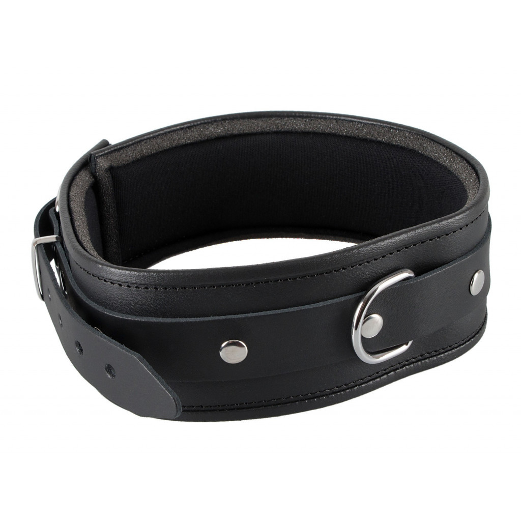 Collar with D-ring in the front and adjustable buckle closure at the back.